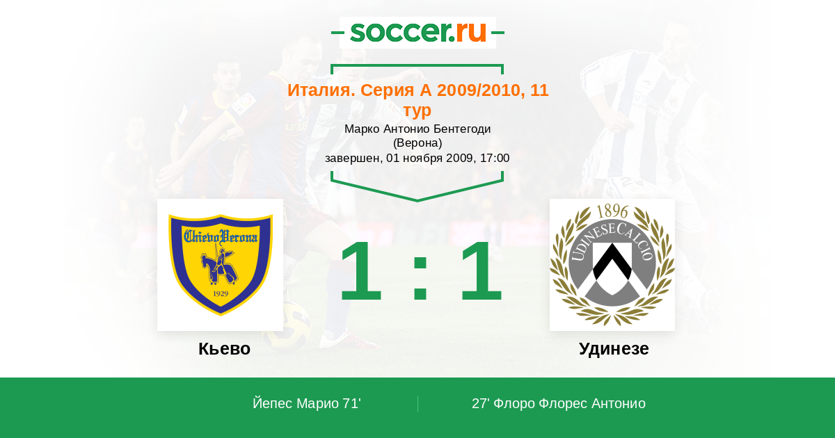 71' (1:1) Йепес Марио (33) (Марколини Микеле (7))