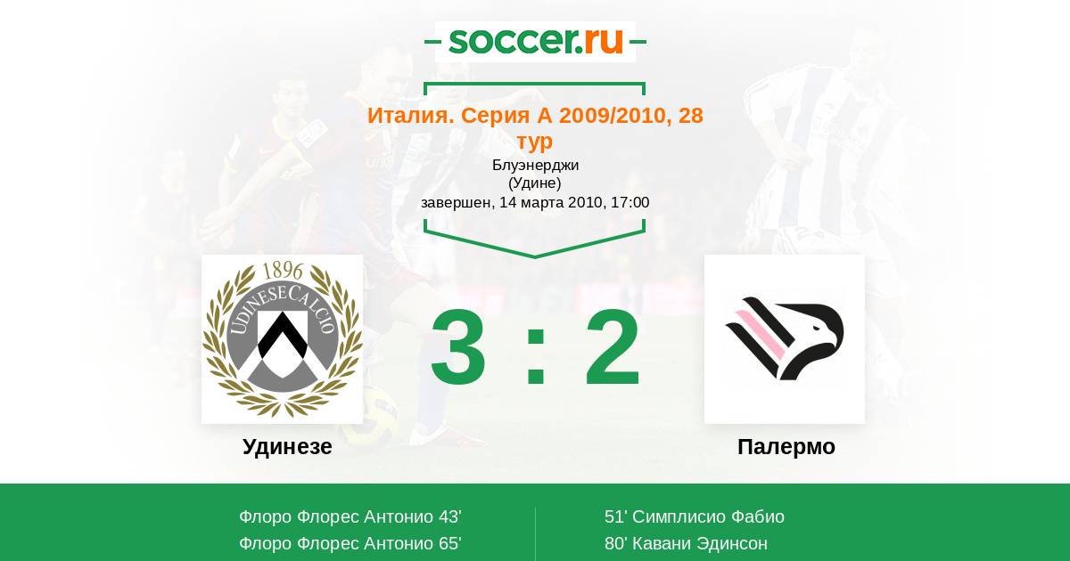65' (2:1) Флоро Флорес Антонио (83) (Ди Натале Антонио (10))