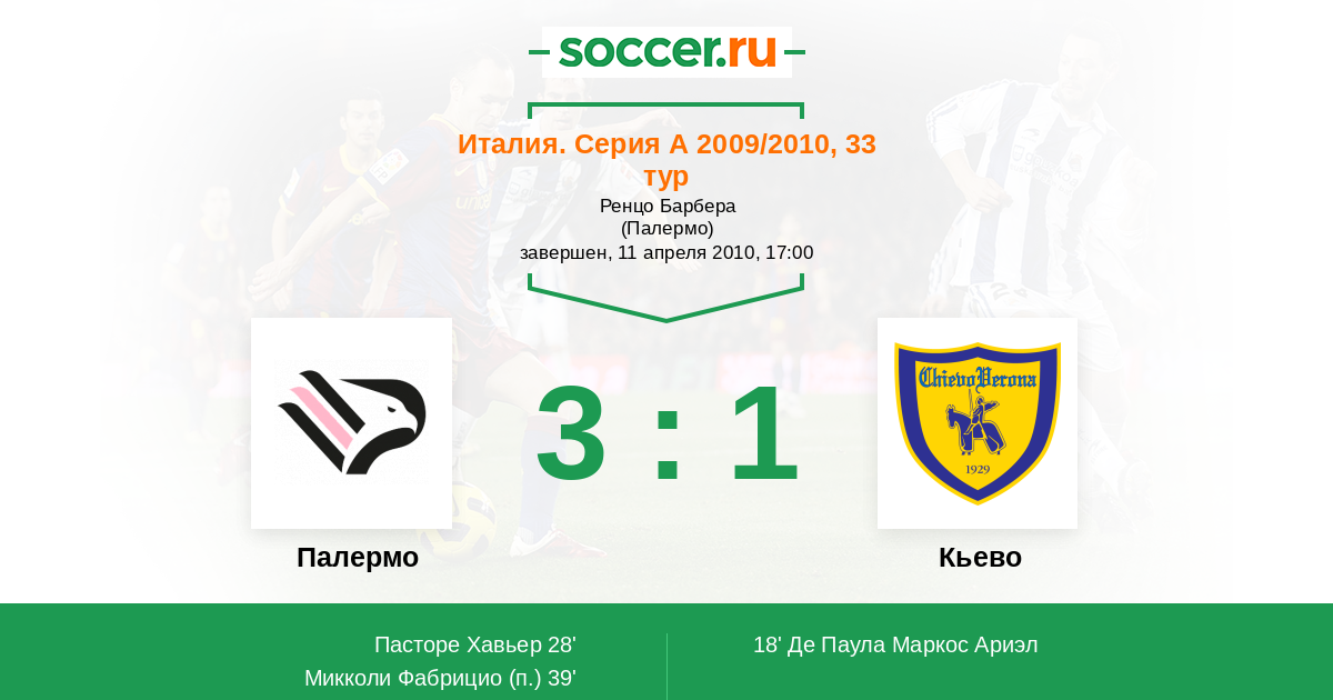 28' (1:1) Пасторе Хавьер (6) (Ливерани Фабио (11))