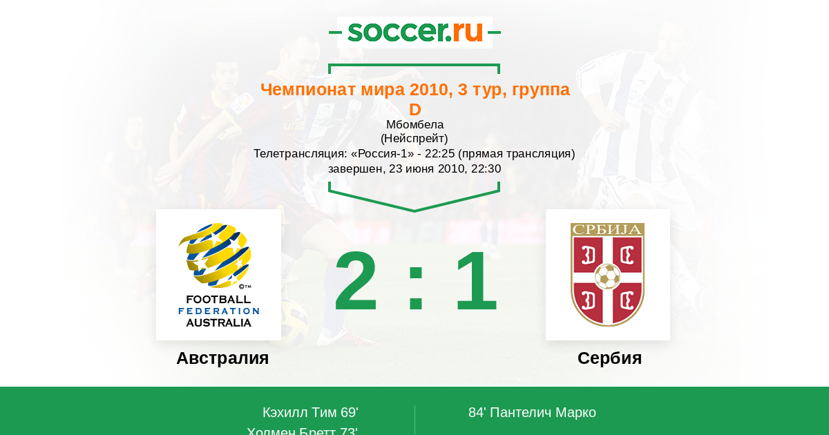 84' (2:1) Пантелич Марко (9) (Тошич Зоран (7))