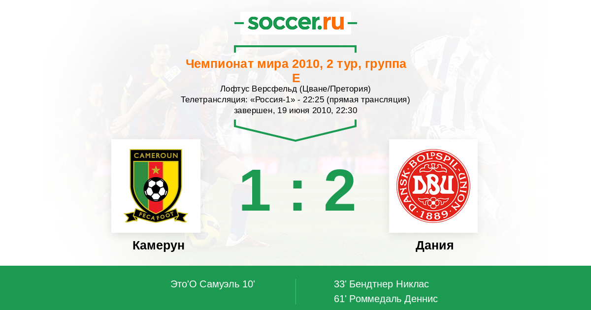 Запасные: 11 Макун Жан (с 46'), 17 Идриссу Мохамаду (с 73'), 23 Абубакар Венсан (с 79'), 14 Шеджу Орельен, 1 Камени Идрисс, 12 Бонг Гаэтан, 20 Манджек Жорж, 22 Нди-Ассембе Гай, 21 Матип Жоэль, 7 Н'Гуэмо Ландри, 13 Чупо-Мотинг Эрик, 4 Сонг Ригоберт