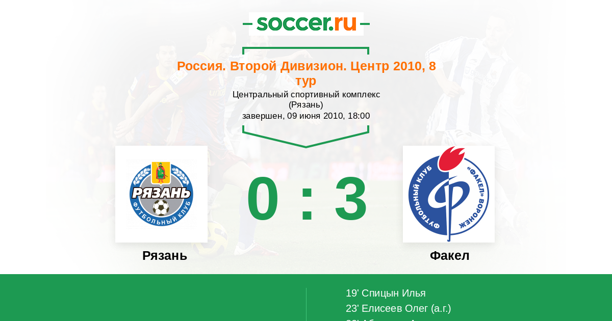 23' (0:2) Автогол Елисеев Олег