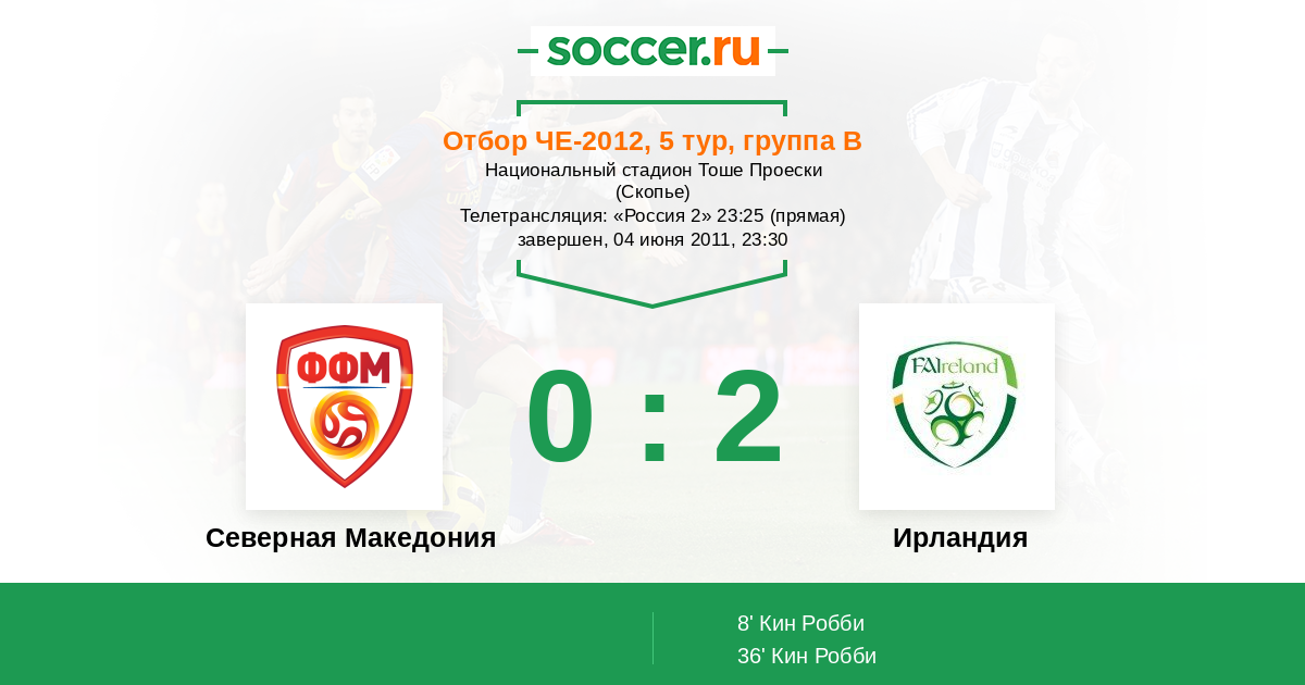 Запасные: Лонг Шейн (с 64'), Форд Дэвид, Макшейн Пол, Коулмен Шеймус, Фахи Кейт, Кеох Эндрю, Фоли Кевин