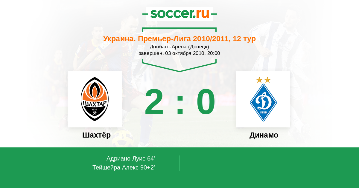 64' (1:0) Адриано Луис (9)