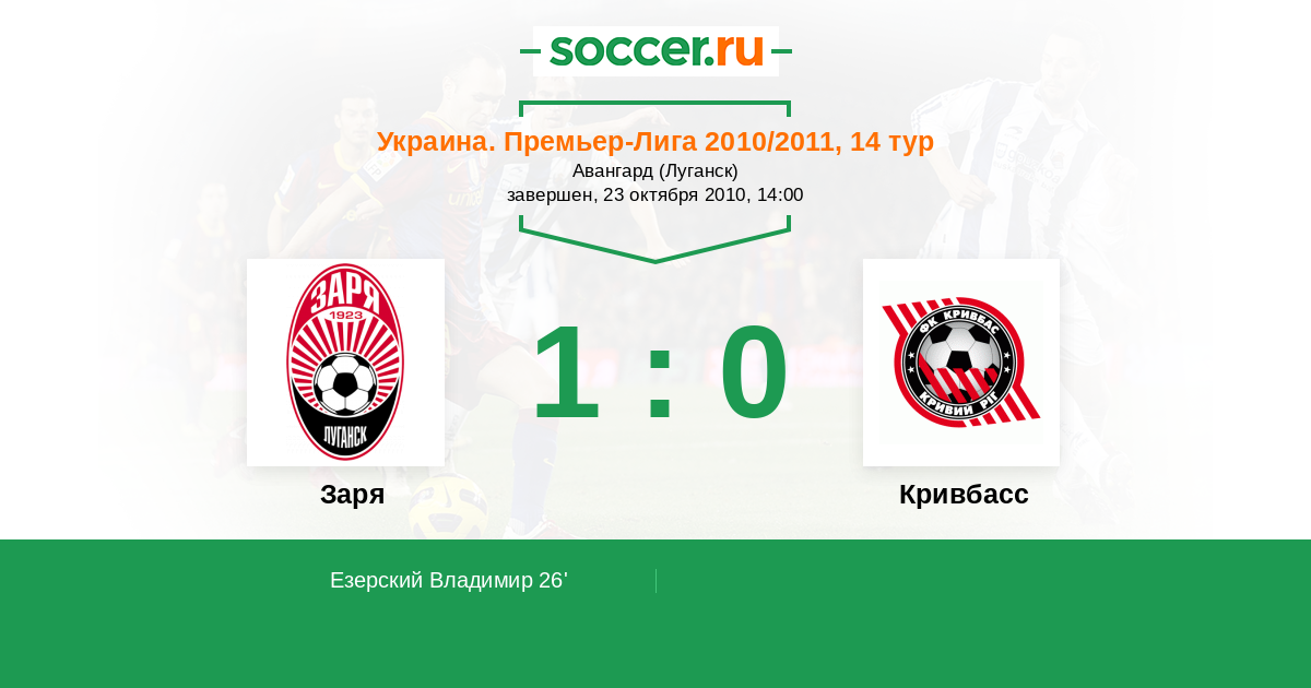 26' (1:0) Езерский Владимир (5)