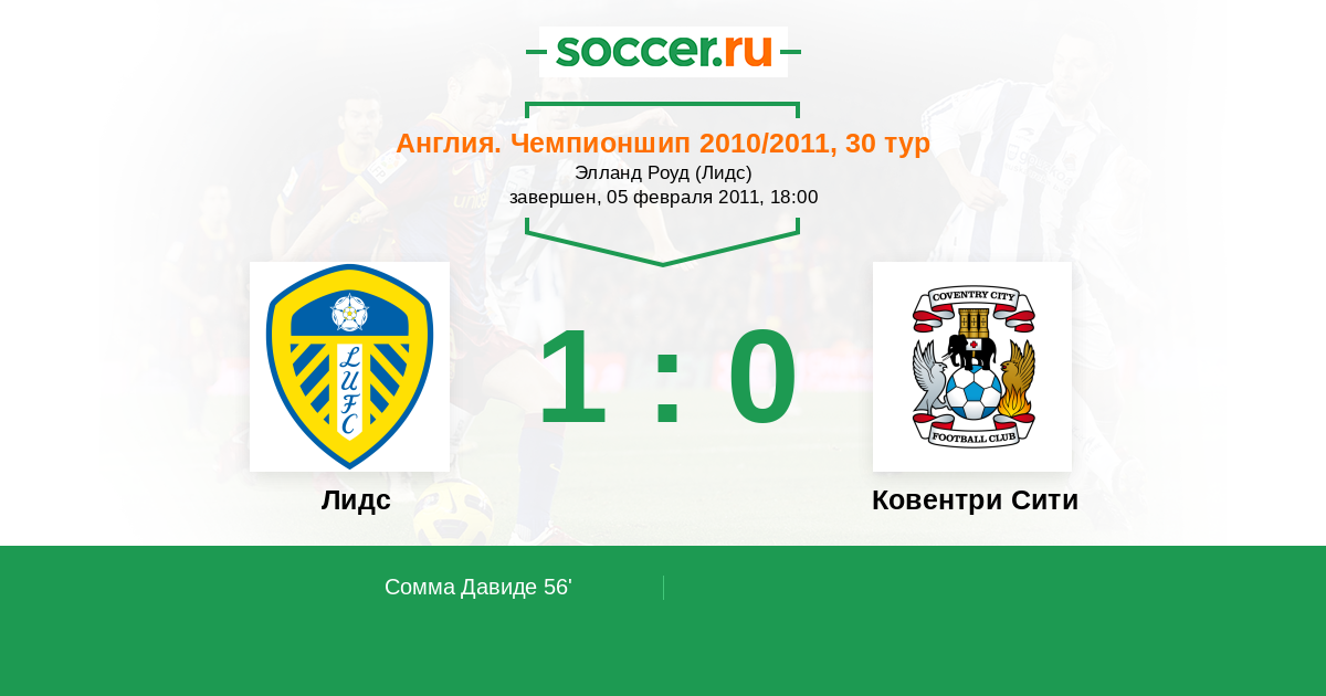 56' (1:0) Сомма Давиде (27) (Хаусон Джонатан (14))