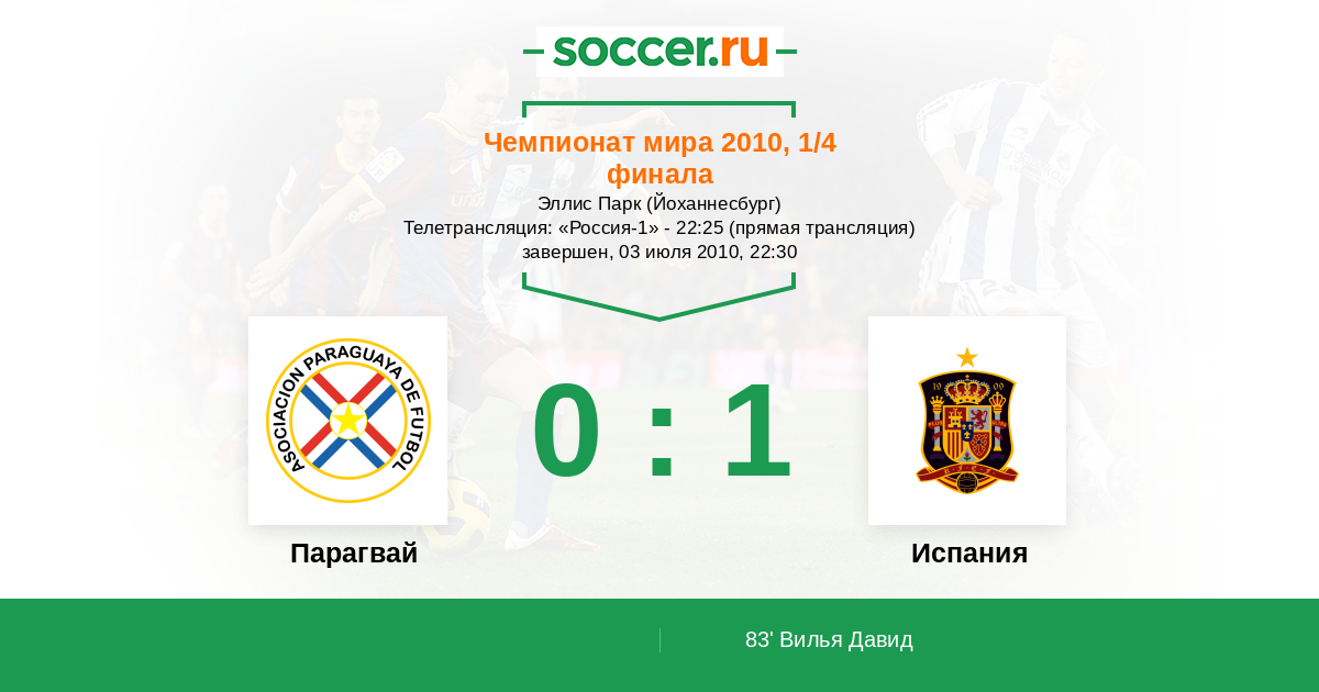 83' (0:1) Вилья Давид (7) (Педро (18))