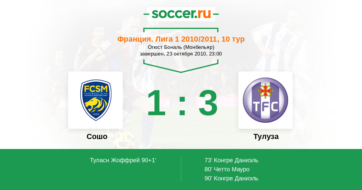 90+1' (1:3) Туласн Жоффрей (7) (Мартен Марвен (14))
