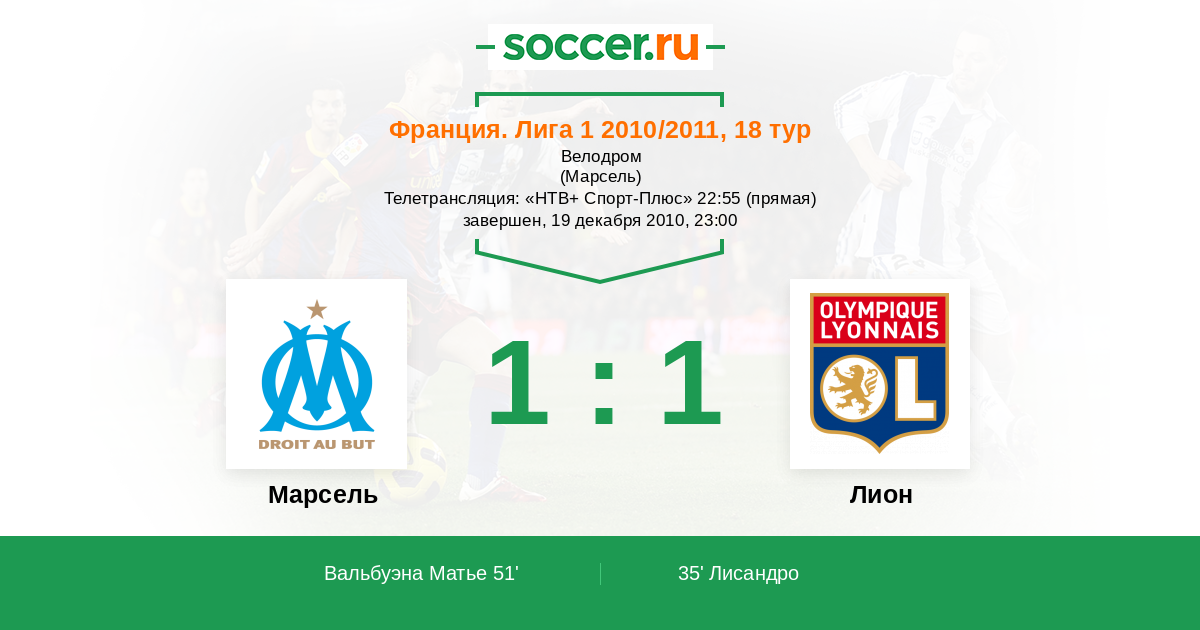 51' (1:1) Вальбуэна Матье (28) (Шейру Бенуа (7))