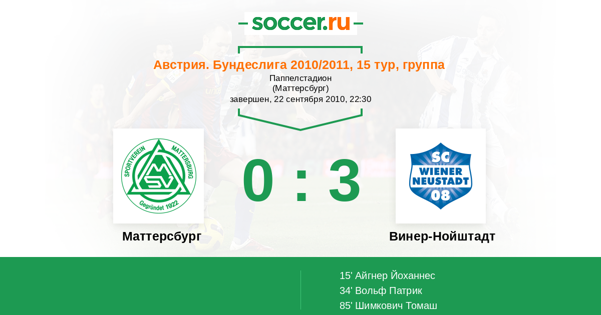 15' (0:1) Айгнер Йоханнес (20)
