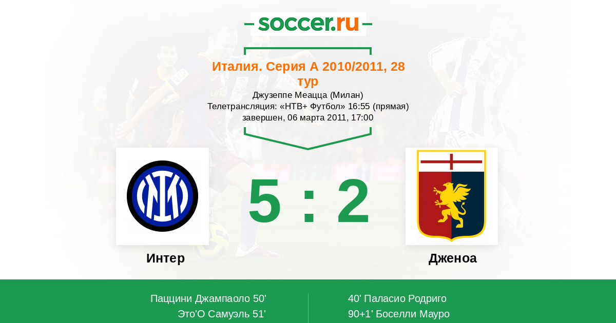 Запасные: 27 Пандев Горан (с 46'), 14 Харджа Хуссин (с 74'), 55 Нагатомо Юто (с 78'), 12 Кастеллацци Лука, 17 Марига Макдональд, 23 Матерацци Марко, 29 Коутиньо Филиппе