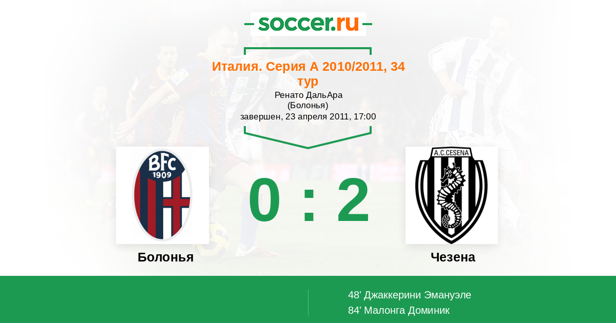 48' (0:1) Джаккерини Эмануэле (23)