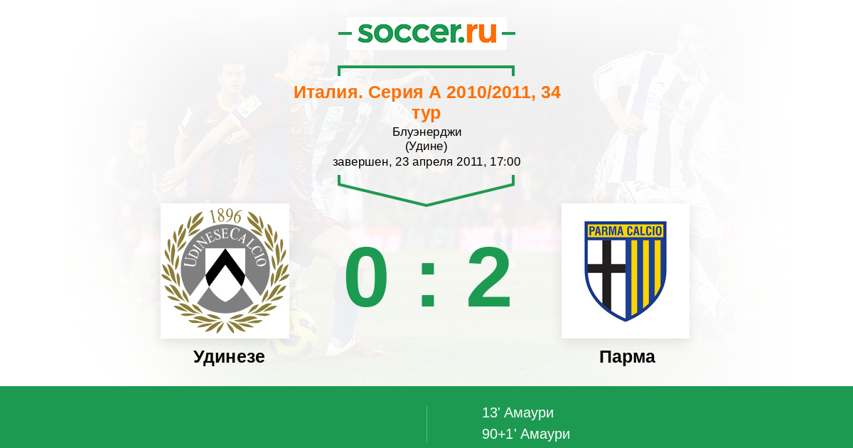 90+1' (0:2) Амаури (11) (Гобби Массимо (18))