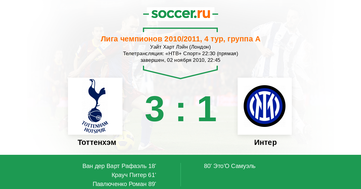 Запасные: 40 Обиора Нванкво (с 53'), 29 Коутиньо Филиппе (с 64'), 22 Милито Диего (с 71'), 21 Орландони Паоло, 2 Кордоба Иван, 23 Матерацци Марко, 39 Сантон Давиде