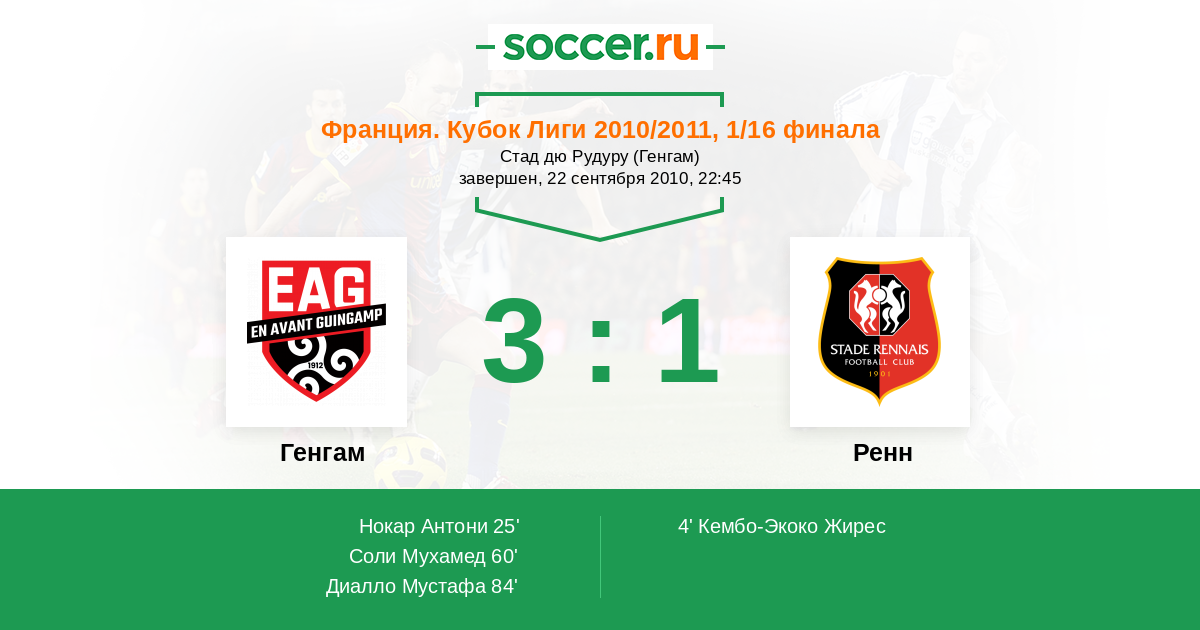 Запасные: М'Вила Янн (с 51'), Монтаньо Виктор Уго (с 60'), Диалло Абдулайе, Бойе Джон, Джеббур Яссин