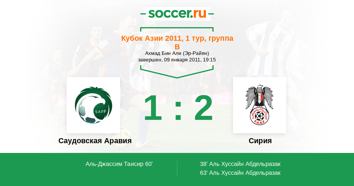 63' (1:2) Аль Хуссайн Абдельразак (7) (Аль-Хуссейн Джихад (6))