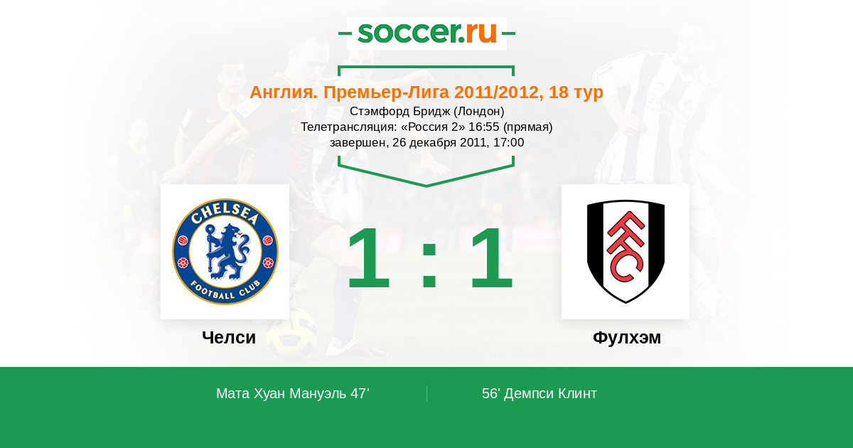 47' (1:0) Мата Хуан Мануэль (10) (Торрес Фернандо (9))