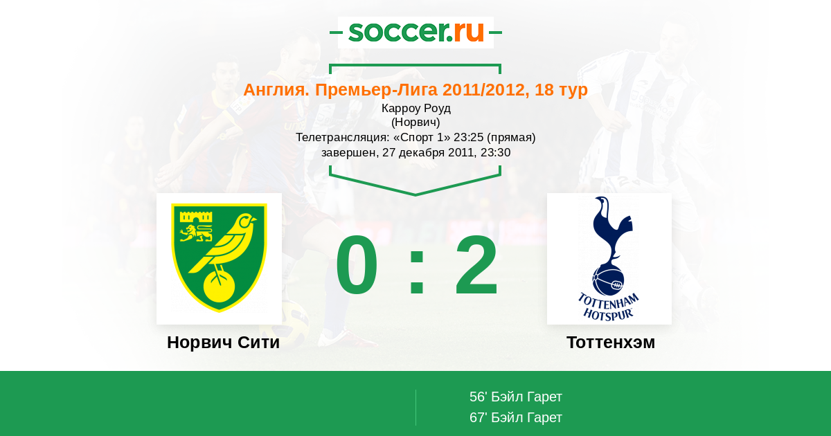 56' (0:1) Бэйл Гарет (3) (Адебайор Эммануэль (10))