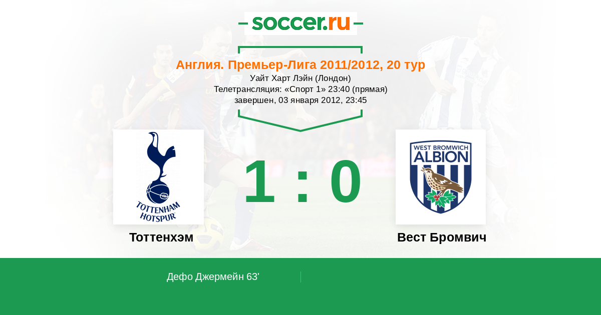 63' (1:0) Дефо Джермейн (18) (Бэйл Гарет (3))