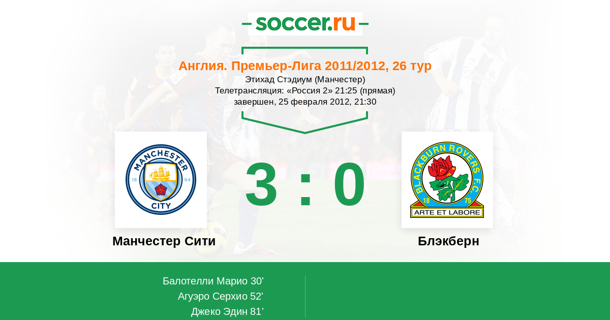 Запасные: 8 Писарро Давид (с 71'), 10 Джеко Эдин (с 79'), 7 Милнер Джеймс (с 86'), 2 Ричардс Майка, 19 Насри Самир, 22 Клиши Гаэль, 30 Пантилимон Костел