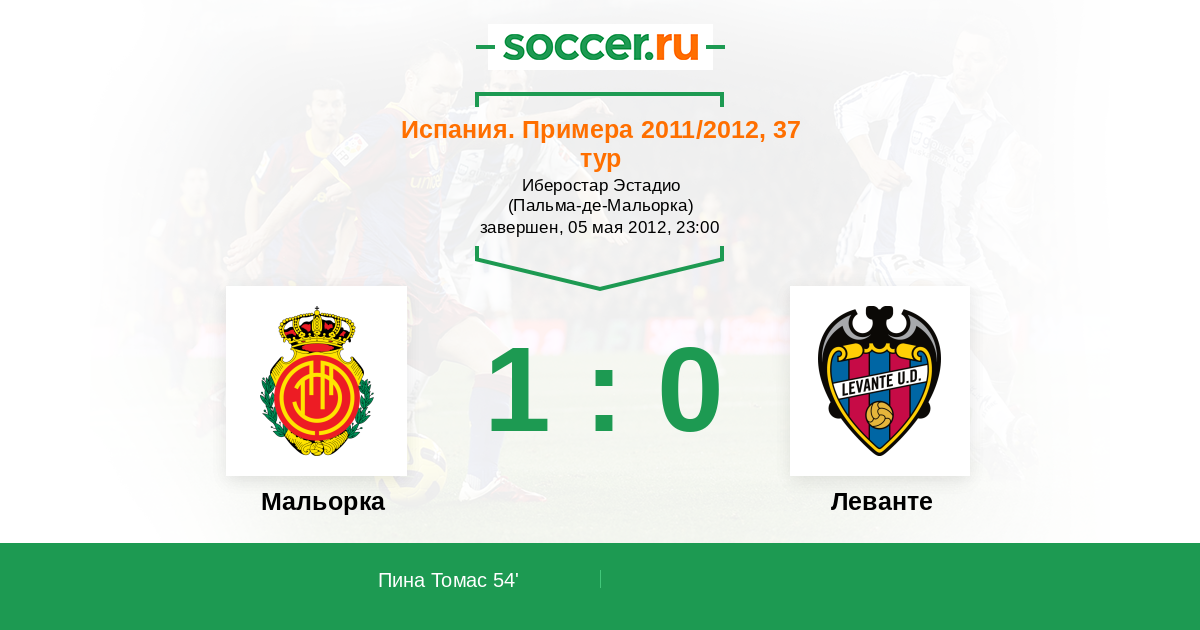 54' (1:0) Пина Томас (5) (Кастро Гонсало (11))