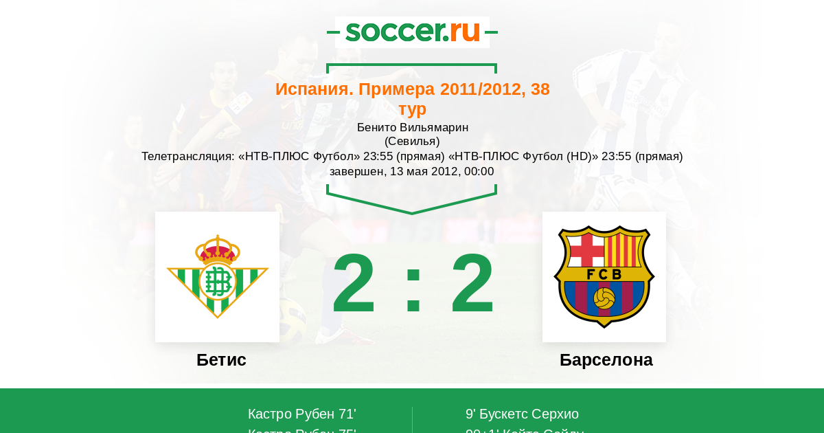 9' (0:1) Бускетс Серхио (16) (Хави (6))