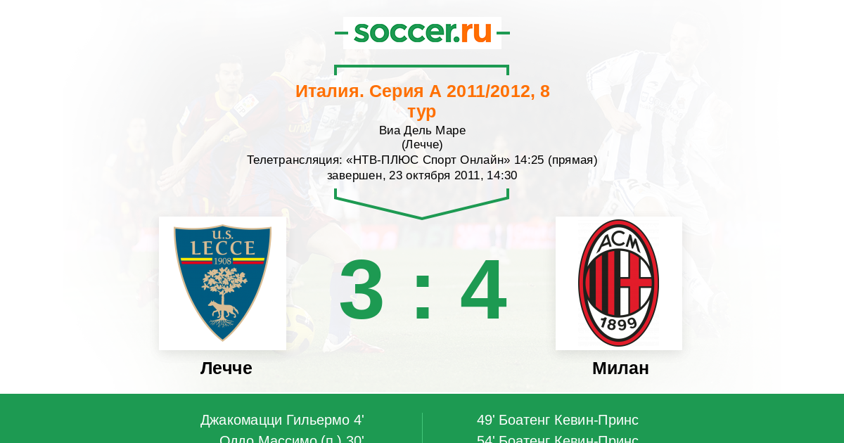 54' (3:2) Боатенг Кевин-Принс (27) (Кассано Антонио (99))