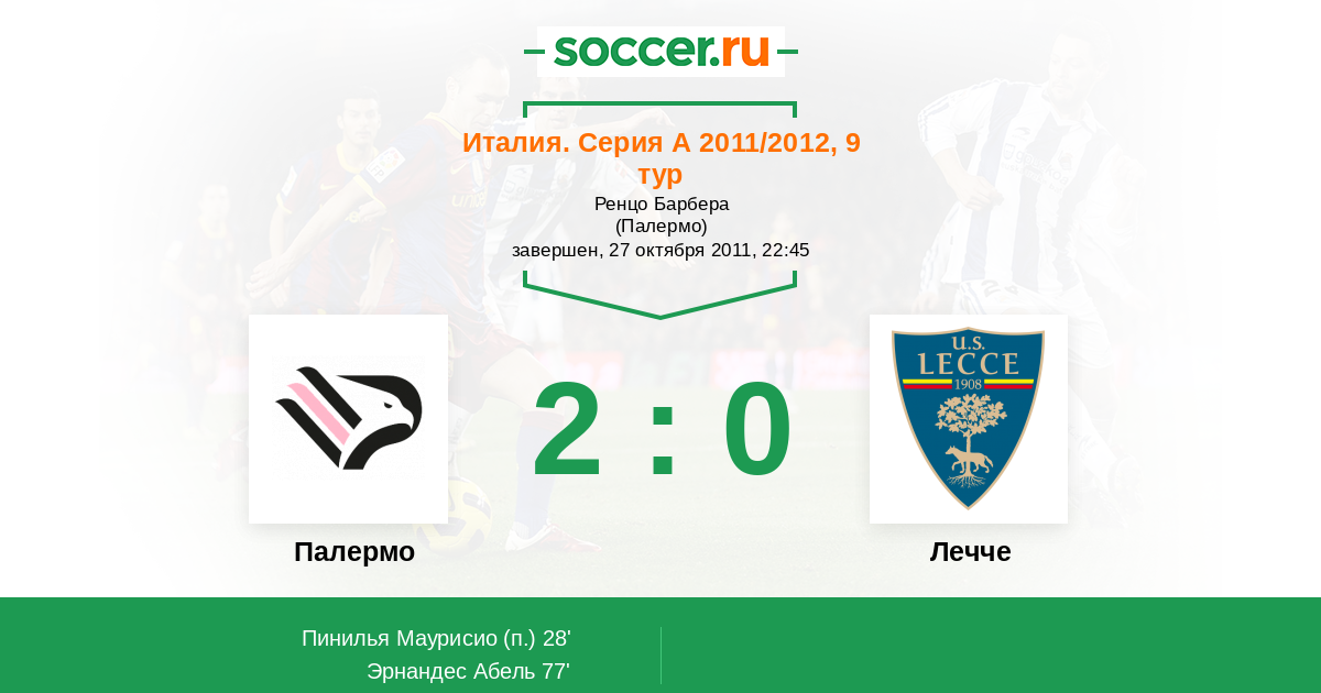 Запасные: 16 Захави Эран (с 46'), 10 Микколи Фабрицио (с 67'), 21 Бачинович Армин (с 71'), 2 Мантовани Андреа, 6 Муньос Эсекьель, 90 Альварес Эдгар, 99 Бенусси Франческо