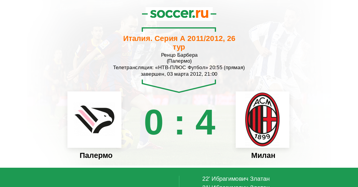 22' (0:1) Ибрагимович Златан (11) (Робиньо (70))