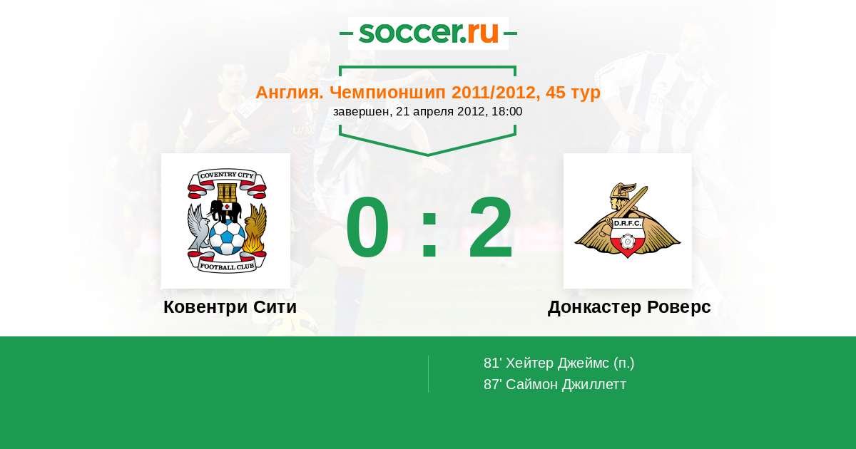 81' (0:1) Хейтер Джеймс (12)