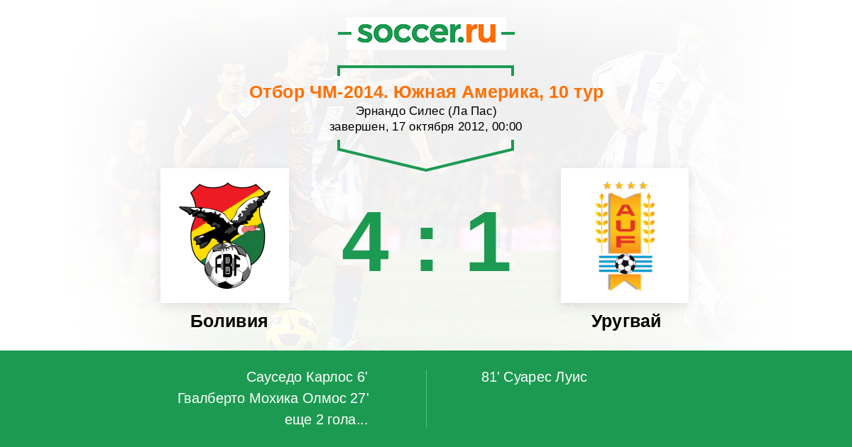 Запасные: Кавани Эдинсон (с 36'), Лодейро Николас (с 36'), Фернандес Альваро (с 66'), Агиррегарай Матиас, Сильва Мартин, Абреу Себастьян, Коатес Себастьян, Эгурен Себастьян, Фернандес Себастьян