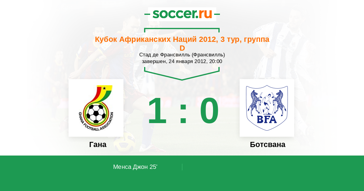 25' (1:0) Менса Джон (5) (Гьян Асамоа (3))