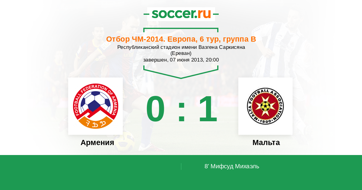 8' (0:1) Мифсуд Михаэль