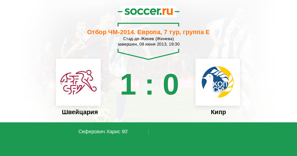 Запасные: Джемайли Блерим (с 67'), Сеферович Харис (с 74'), Барнетта Транкильо (с 77'), Джака Гранит, Эмегара Инносент, Вельфли Марко, Сендерос Филипп, Циглер Рето, Клозе Тимм, Зоммер Янн