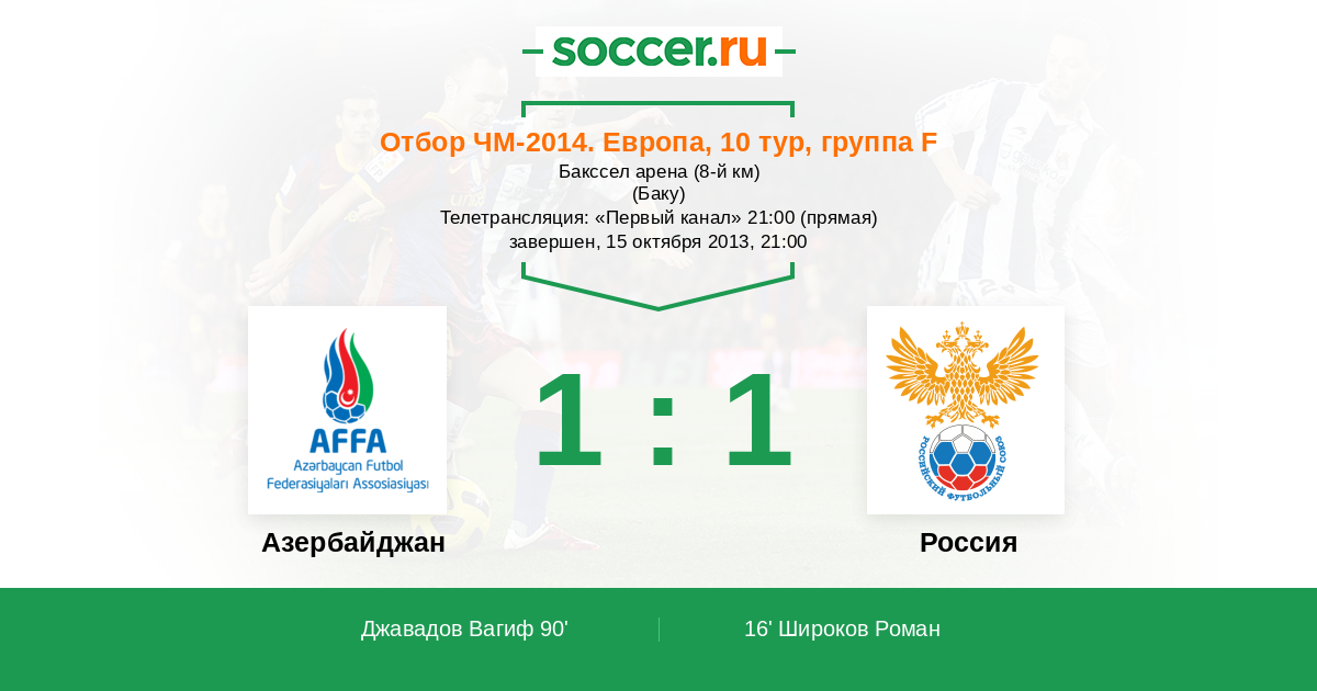 90' (1:1) Джавадов Вагиф (7) (Шукуров Махир (4))