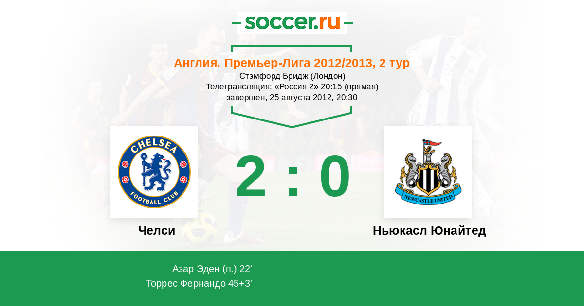 Запасные: 7 Рамирес (с 67'), 8 Лэмпард Фрэнк (с 88'), 5 Эссьен Майкл, 6 Ромеу Ориоль, 11 Оскар, 22 Тернбулл Росс, 23 Старридж Дэниел