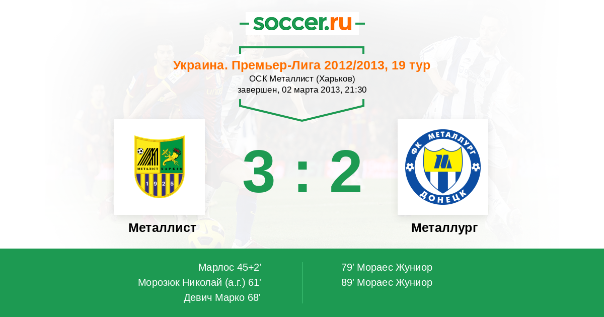 89' (3:2) Мораес Жуниор (91) (Морозюк Николай (7))