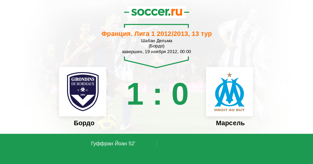 52' (1:0) Гуффран Йоан (9) (Тремулинас Бенуа (28))