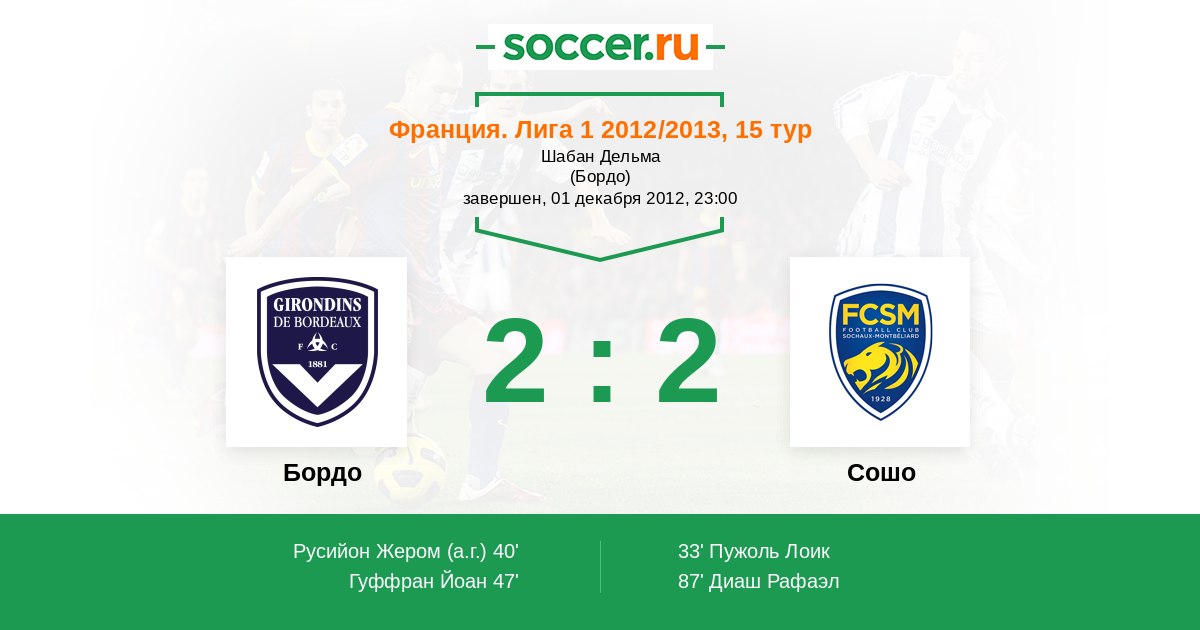 40' (1:1) Автогол Русийон Жером (14)