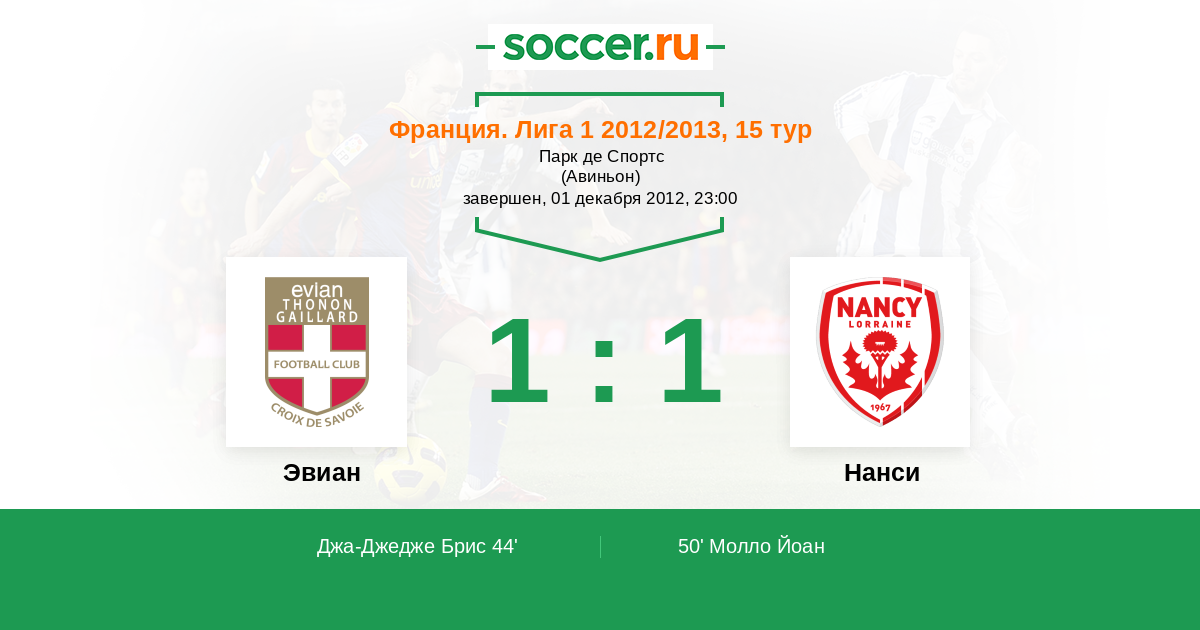 50' (1:1) Молло Йоан (8) (Лотье Жордан (4))