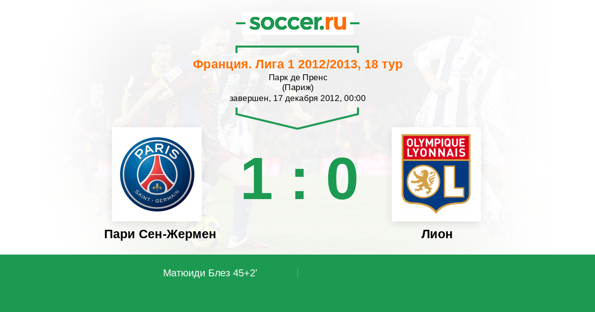 45+2' (1:0) Матюиди Блез (14) (Ибрагимович Златан (10))
