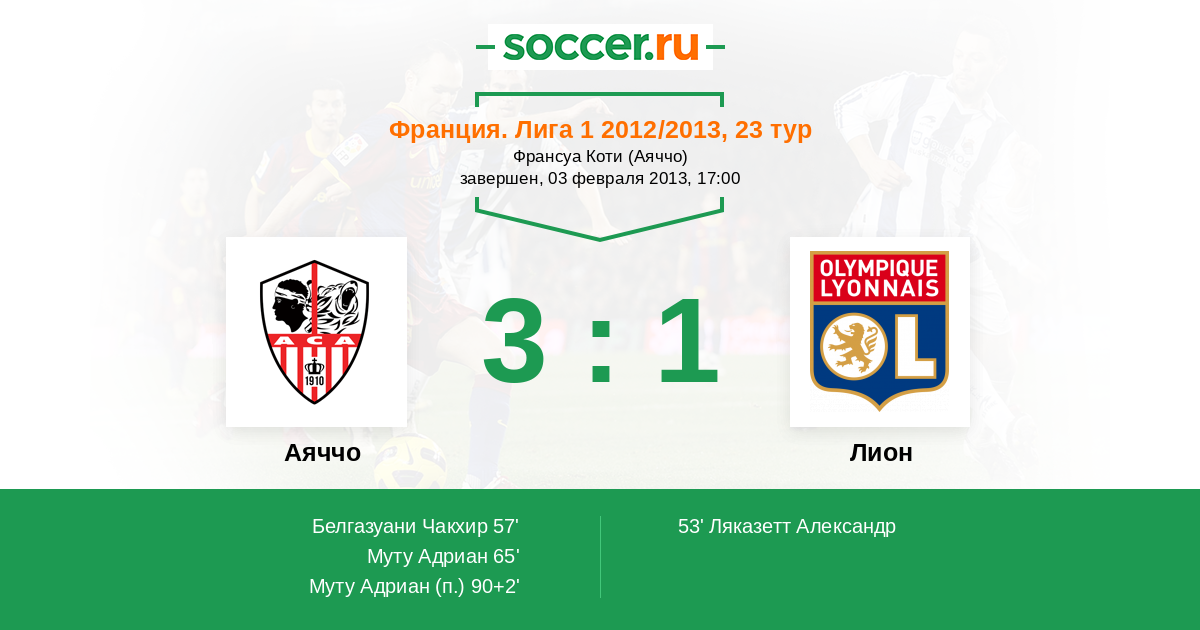 53' (0:1) Ляказетт Александр (10) (Геззаль Рашид (31))