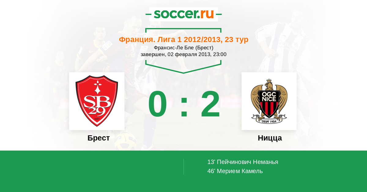 13' (0:1) Пейчинович Неманья (4)