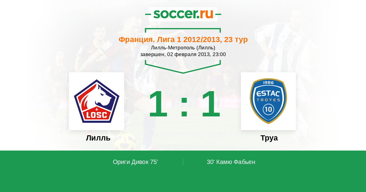 30' (0:1) Камю Фабьен (22) (Энза-Ямисси Элог (6))