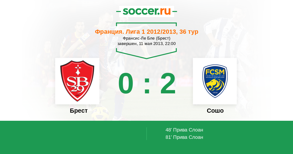 48' (0:1) Прива Слоан (9) (Русийон Жером (14))