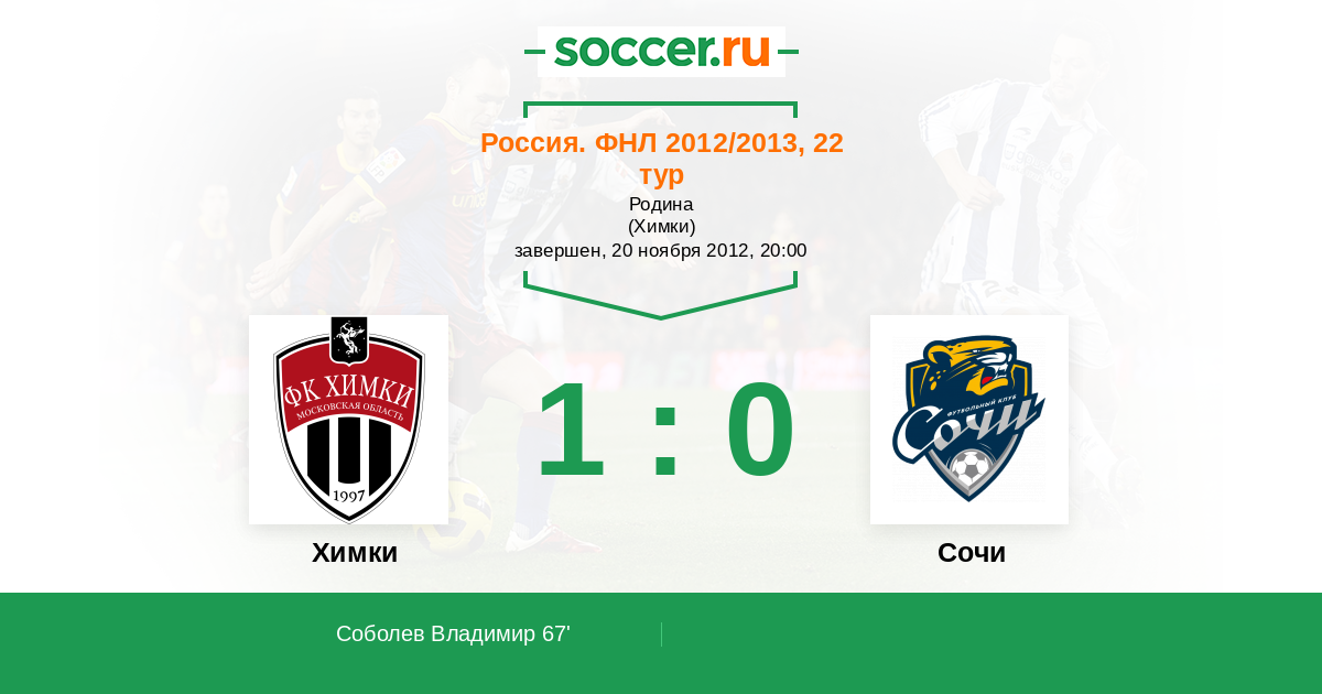67' (1:0) Соболев Владимир (Комков Михаил)