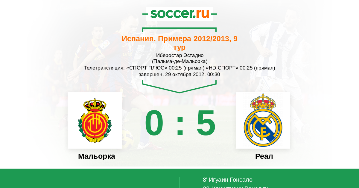 22' (0:2) Криштиану Роналду (7) (Игуаин Гонсало (20))
