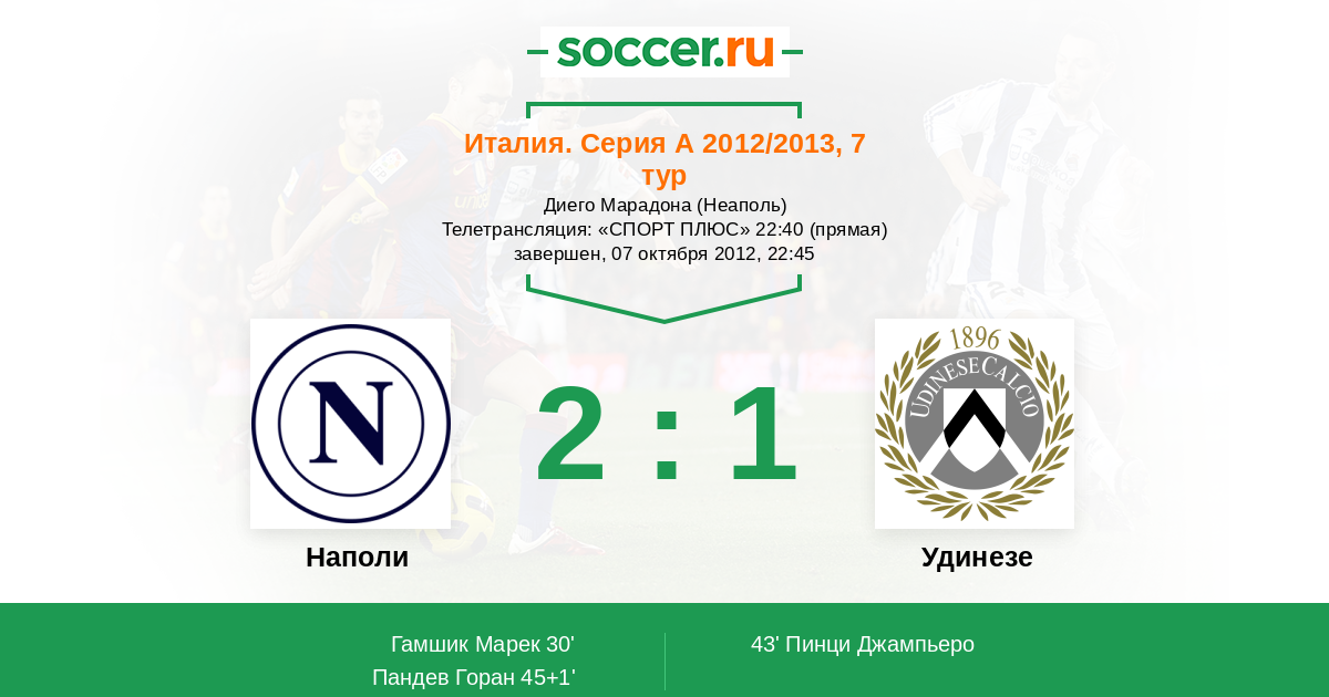 30' (1:0) Гамшик Марек (17) (Маджо Кристиан (11))