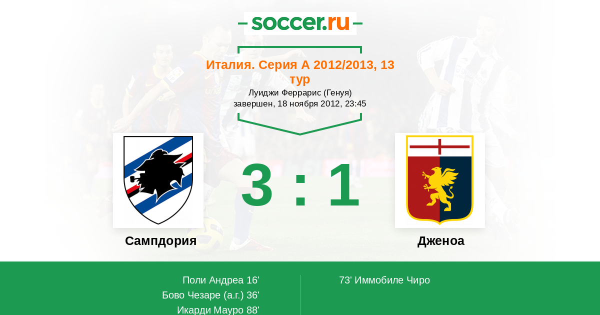 16' (1:0) Поли Андреа (16) (Мареска Энцо (6))