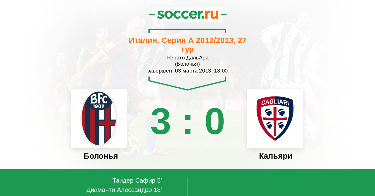18' (2:0) Диаманти Алессандро (23) (Джилардино Альберто (10))